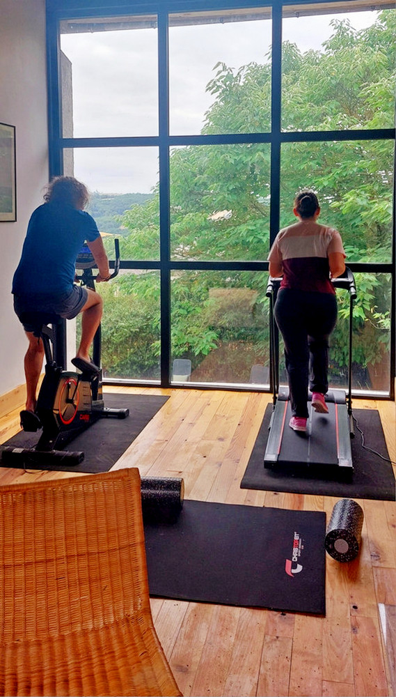 La très lumineuse salle de fitness, avec vue sur la campagne environnante, s'impose pour se détendre physiquement.